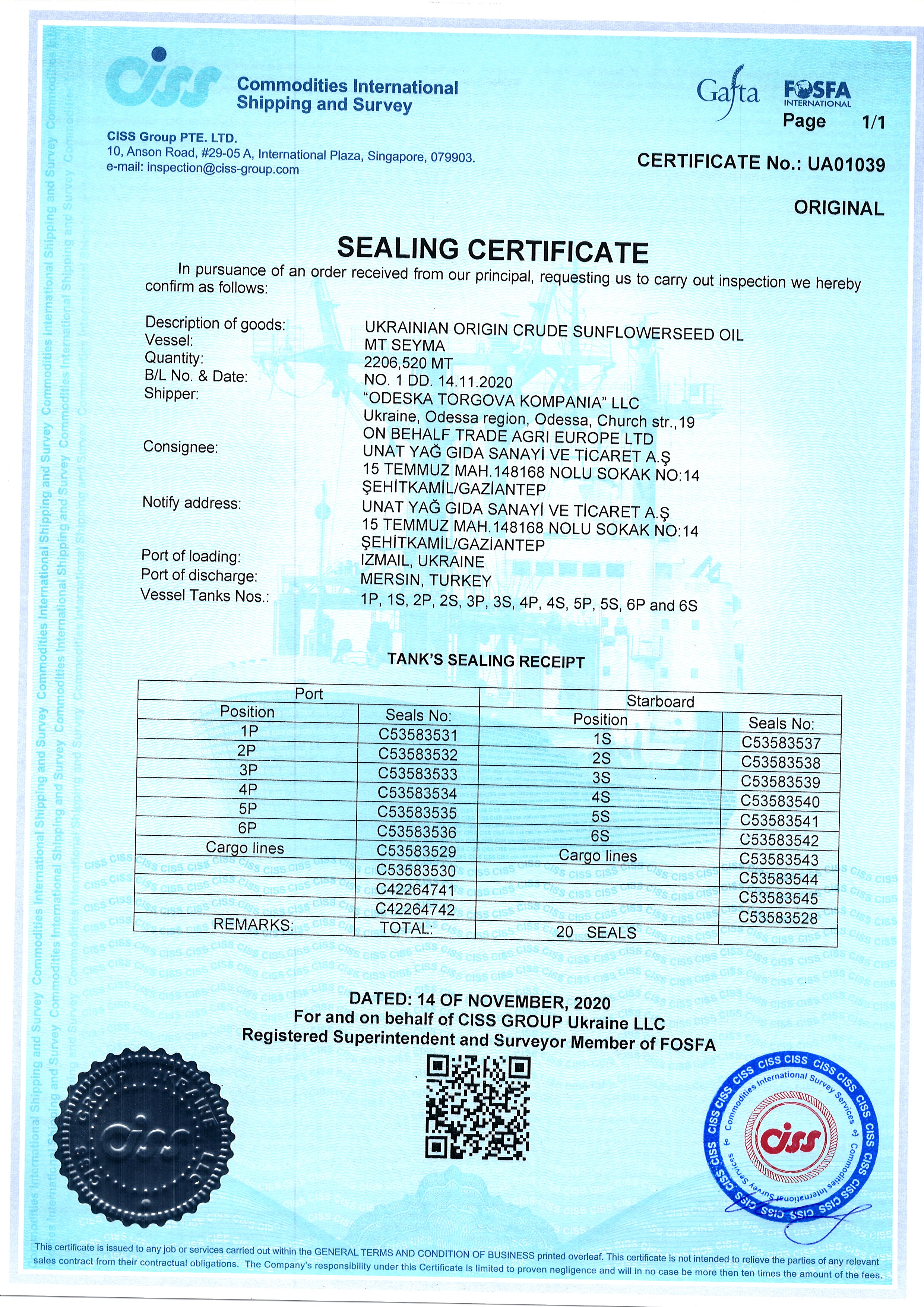Regulatory documents (GAFTA, FOSFA contracts etc.)