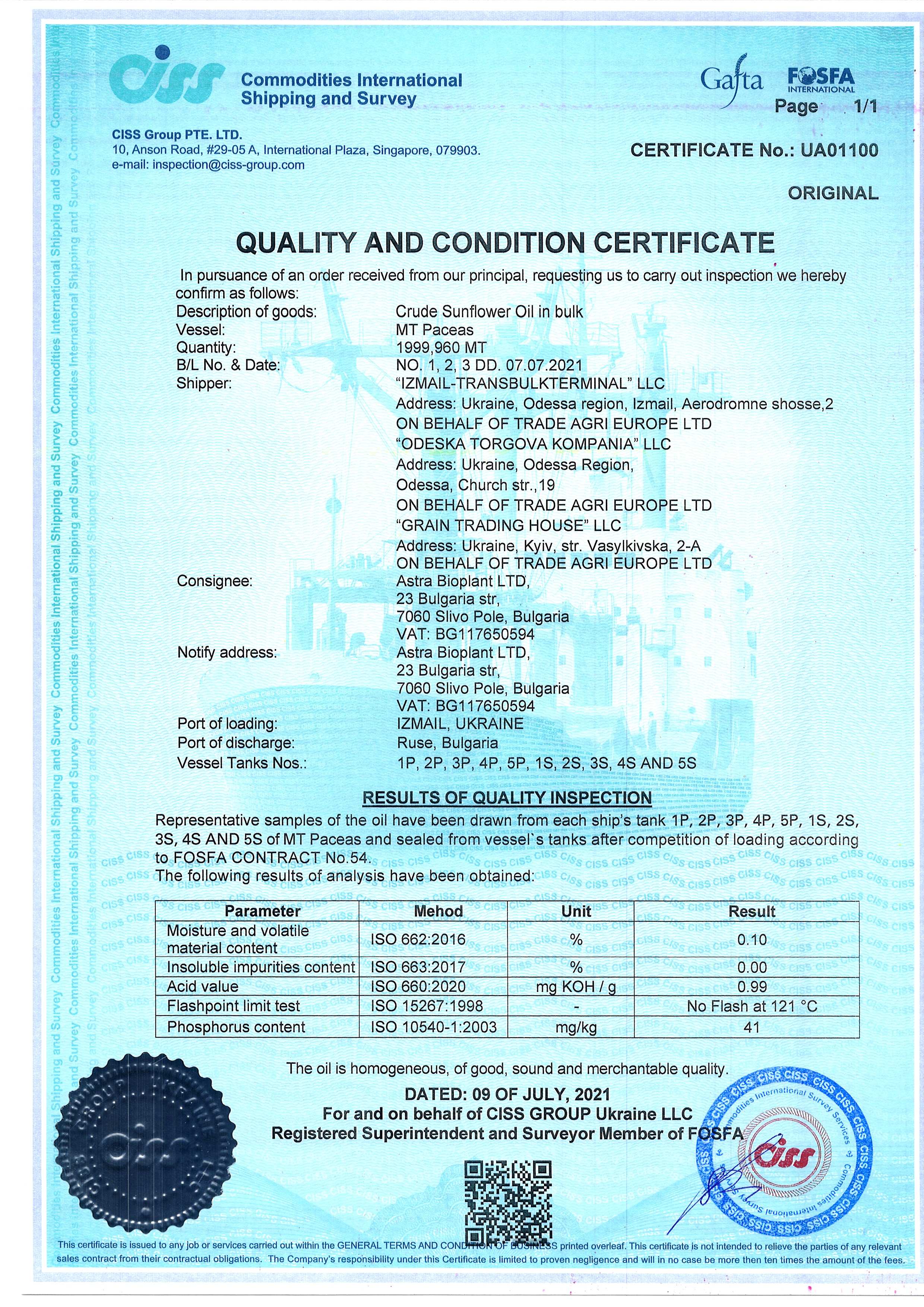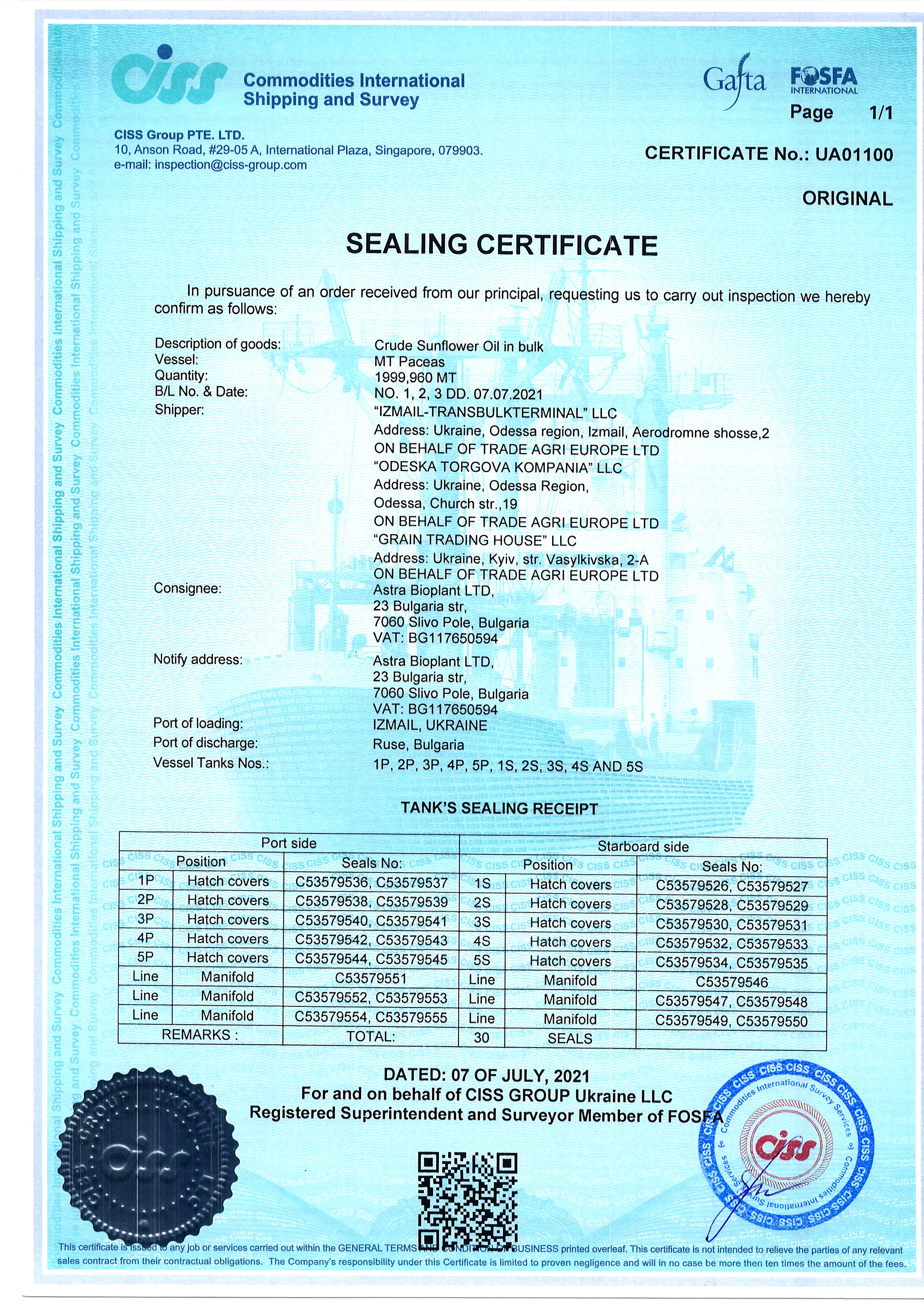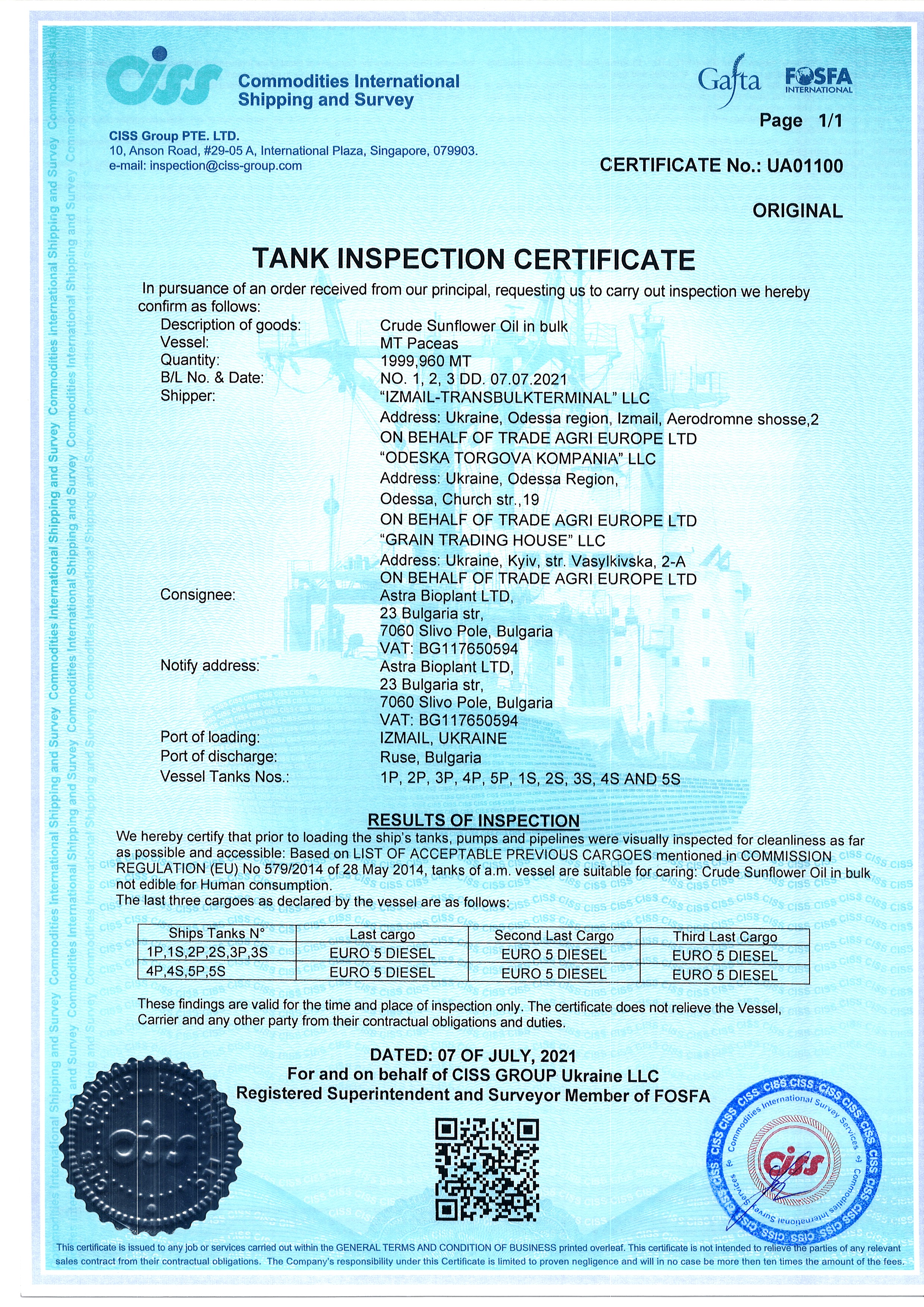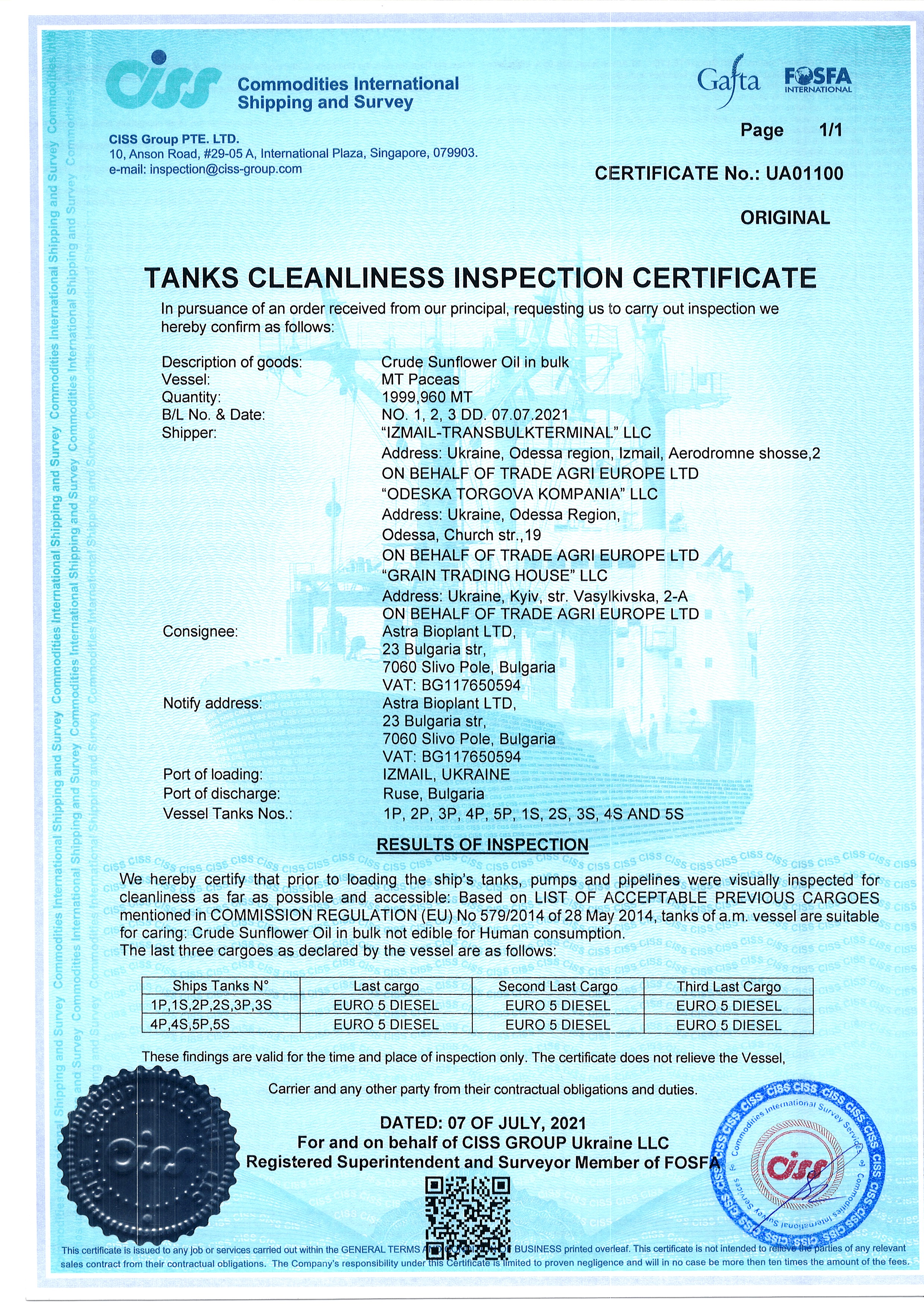 Regulatory documents (GAFTA, FOSFA contracts etc.)