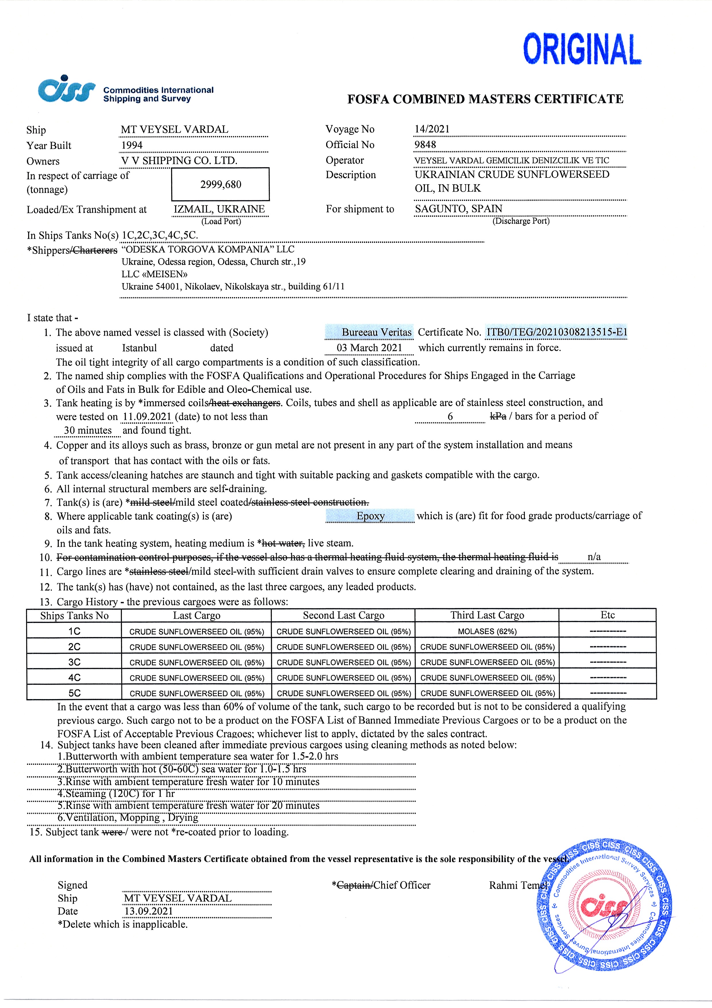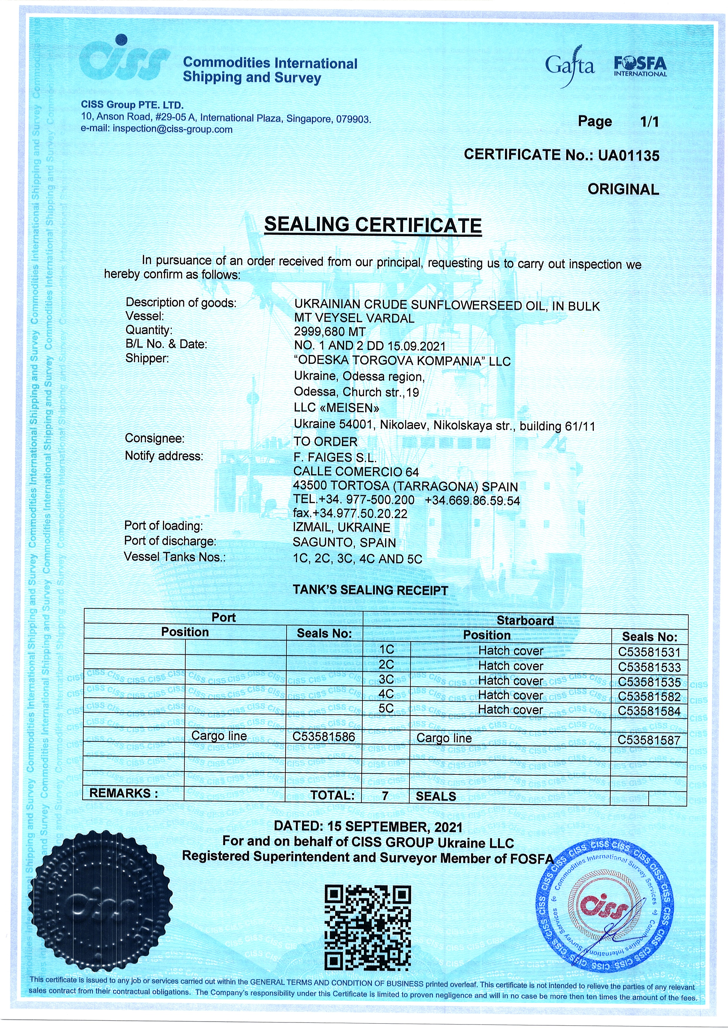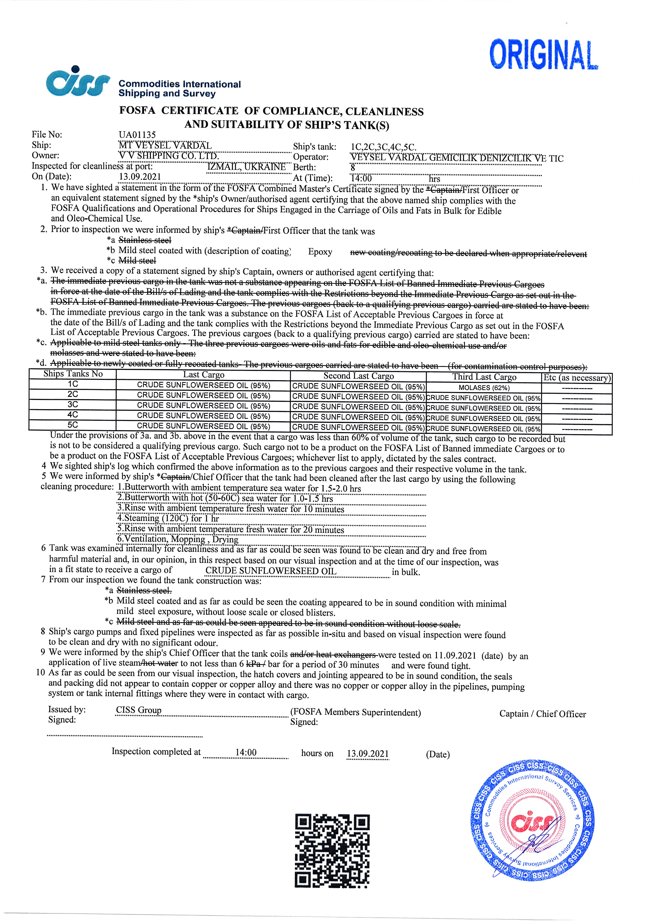 Regulatory documents (GAFTA, FOSFA contracts etc.)