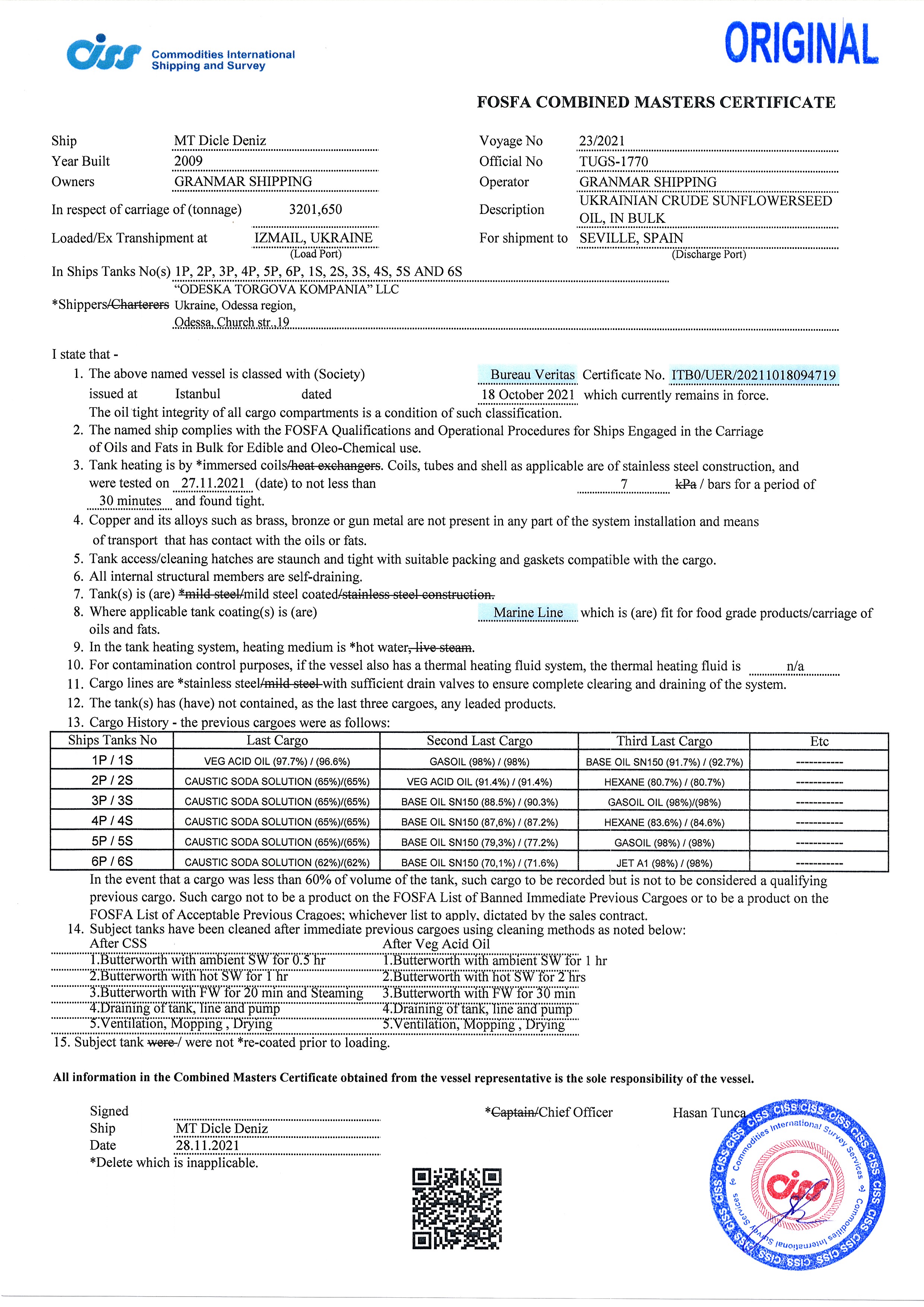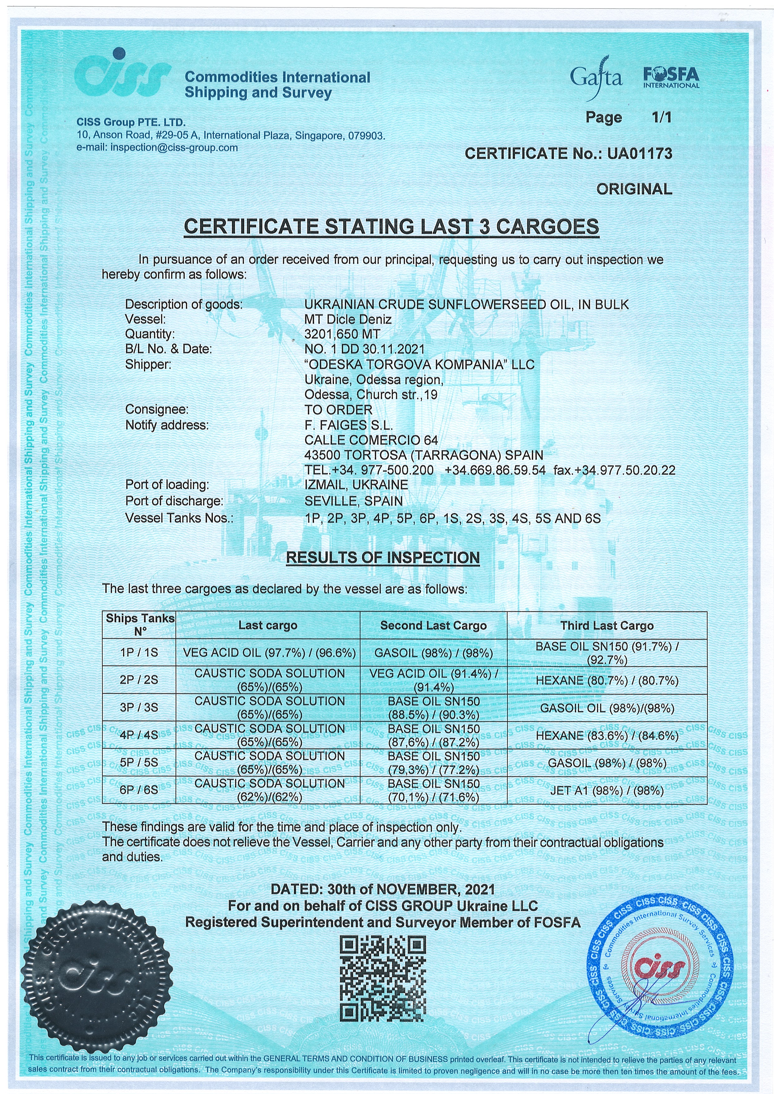 Regulatory documents (GAFTA, FOSFA contracts etc.)