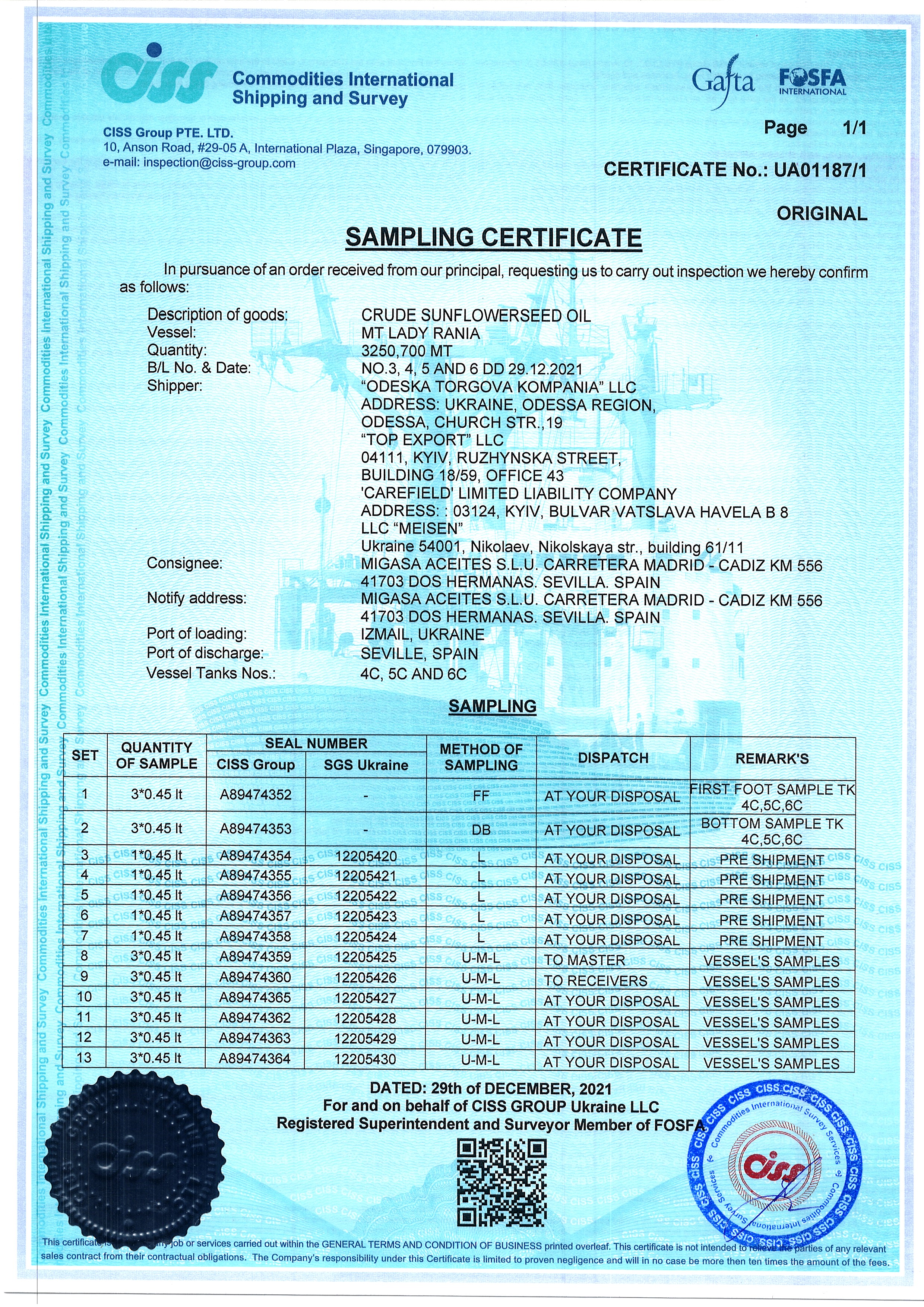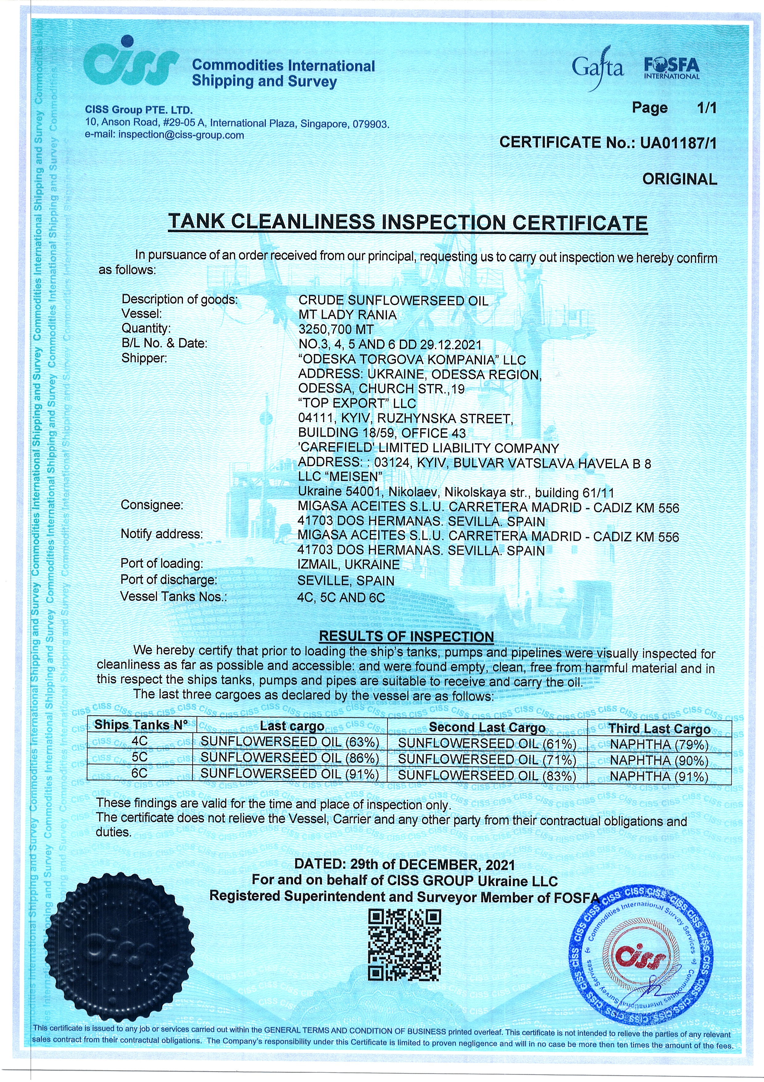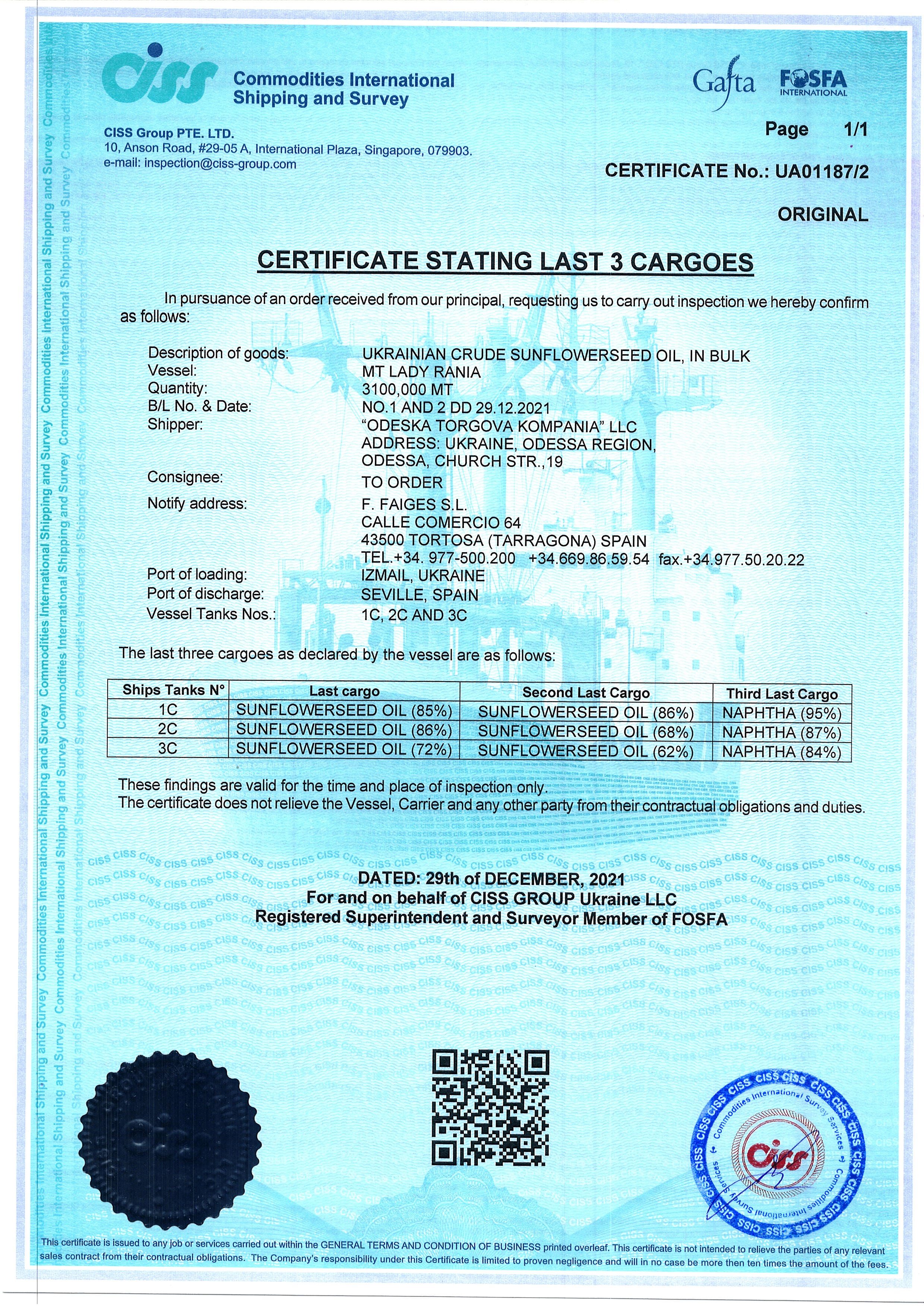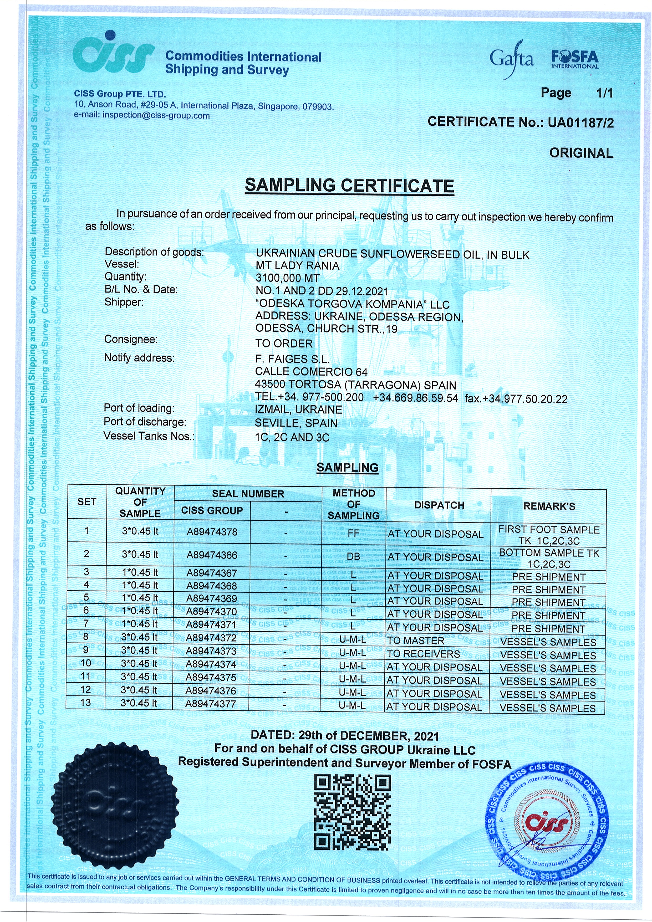 Regulatory documents (GAFTA, FOSFA contracts etc.)