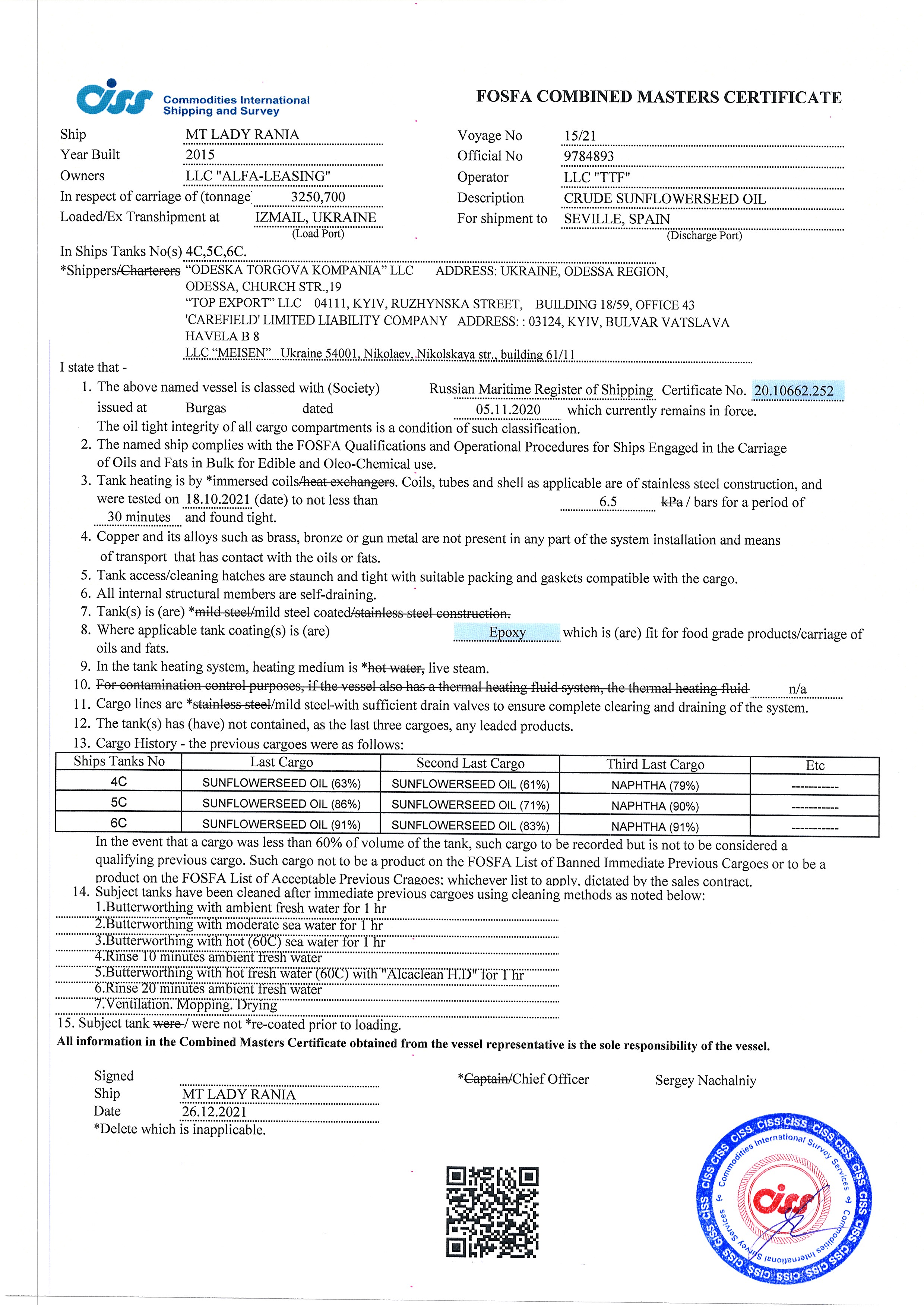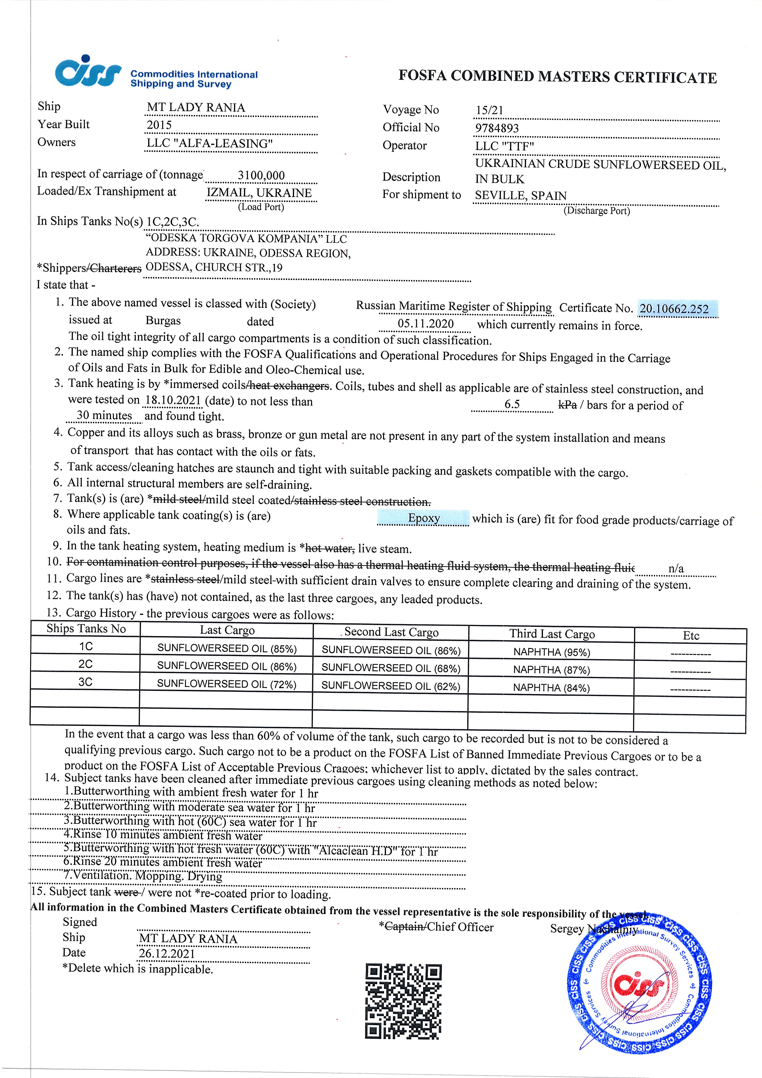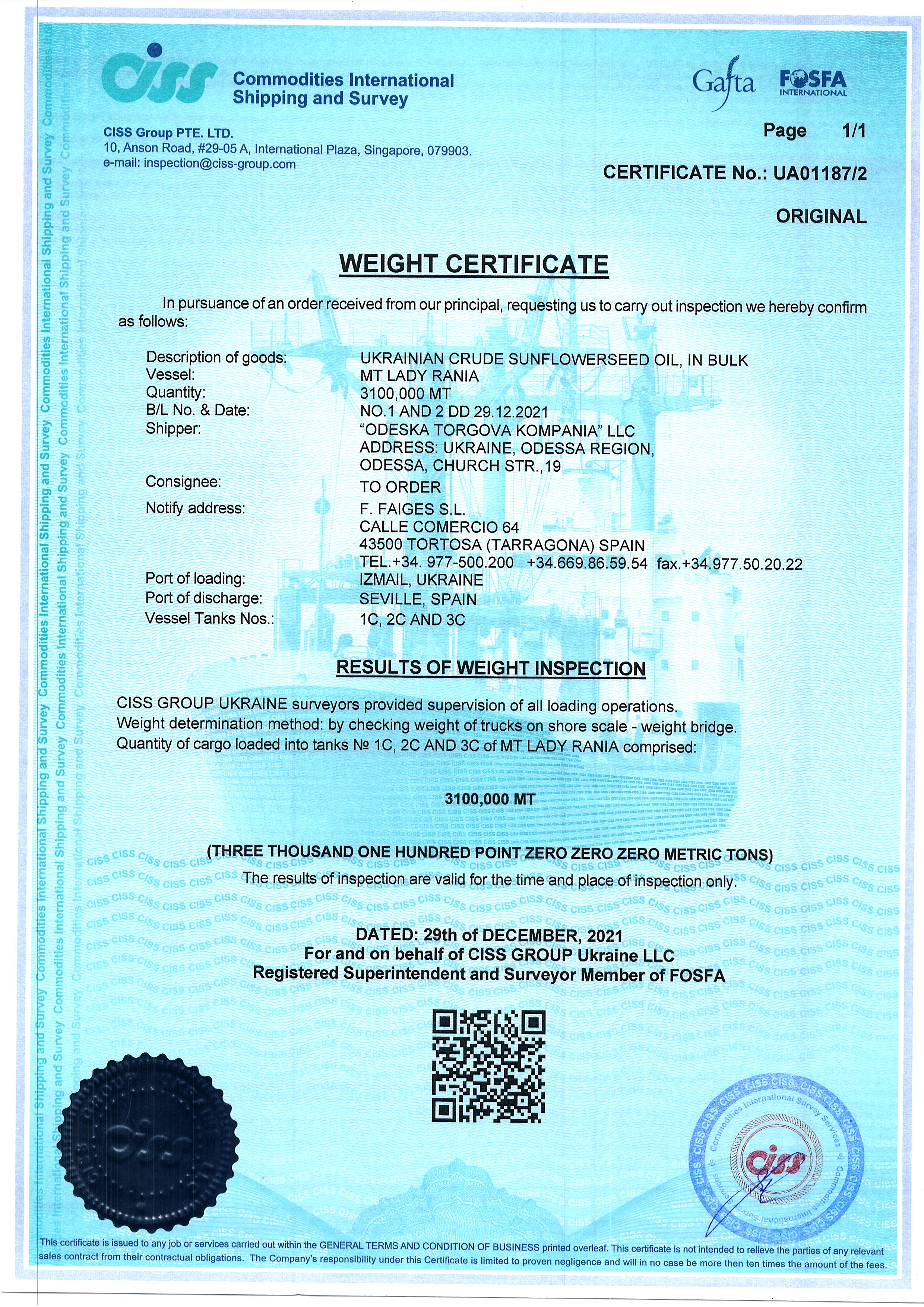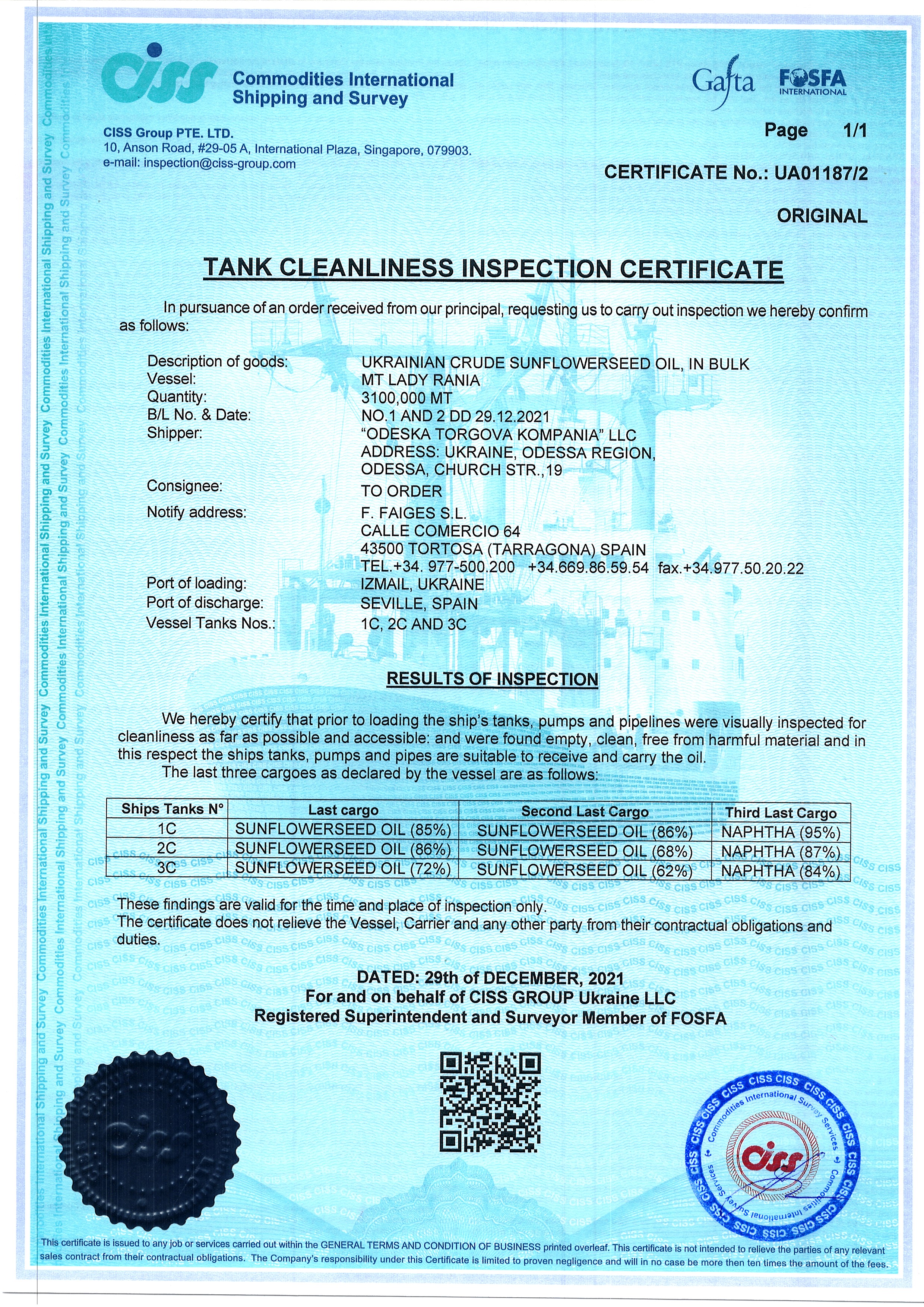 Regulatory documents (GAFTA, FOSFA contracts etc.)